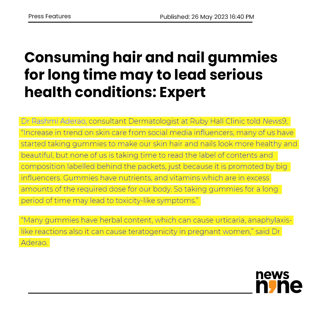 Read the complete article on News Nine www.news9live.com/health/consuming-hair-and-nail-gummies-for-long-time-may-to-lead-serious-health-conditions-expert-2155987